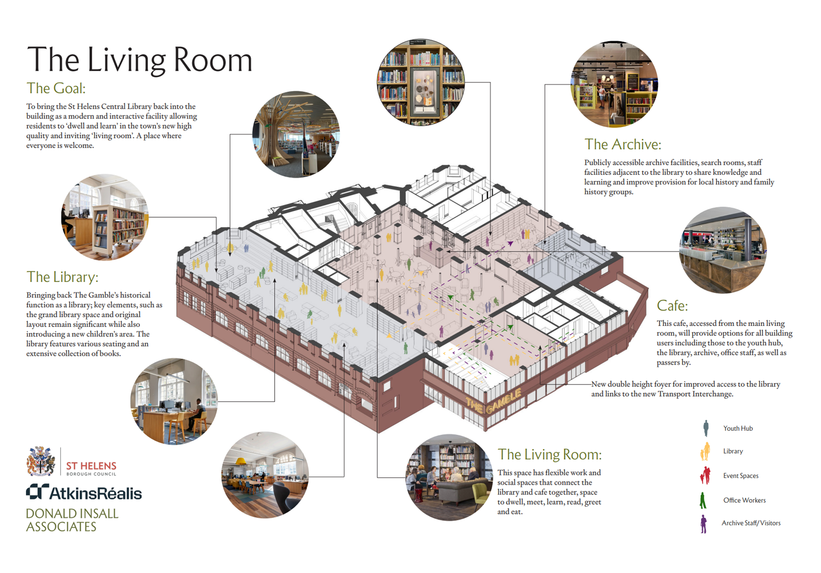 We will bring the St Helens Central Library back into the building as a modern and interactive facility allowing residents to 'dwell and learn' in the town's new high quality and inviting 'living room' - a place where everyone is welcome.