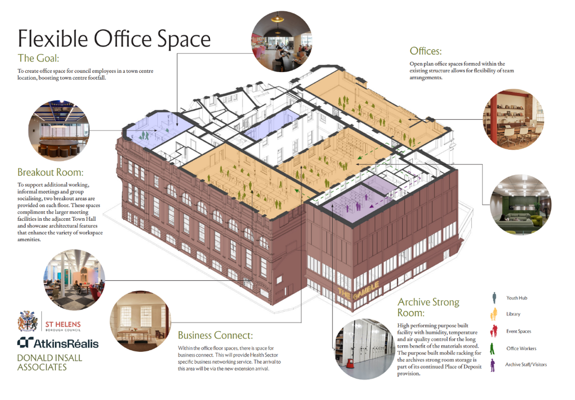 The upper floors will be transformed to provide office space for Council employees, locating them directly in the town centre to increase footfall and dwell time, importantly leading to increased custom for town centre businesses and amenities.